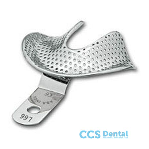 Cubetas para impresiones en edéntulos. perforadas. de acero inoxidable con reborde.