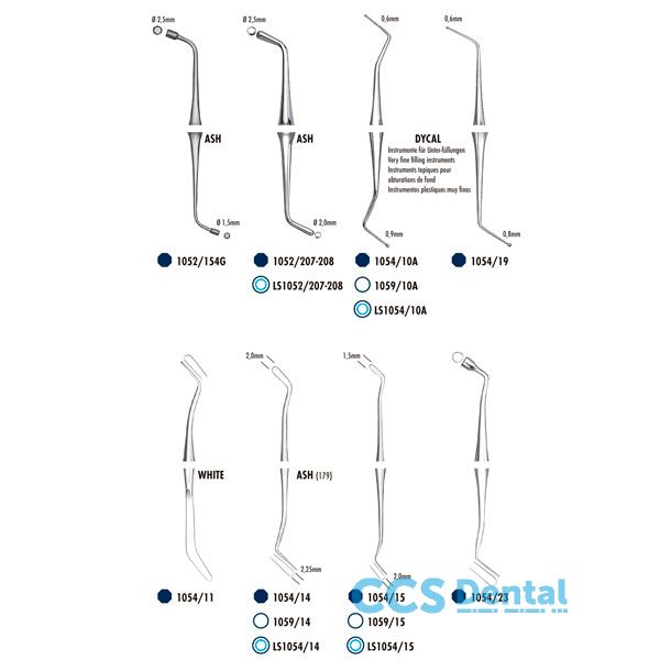 Instrumentos para obturación y modelado de todo tipo de materiales plásticos. auto y fotopolimerizables. como cementos. composites fondos de cavidad y análogos.Muy fino.0.6mm - 0.8mm.