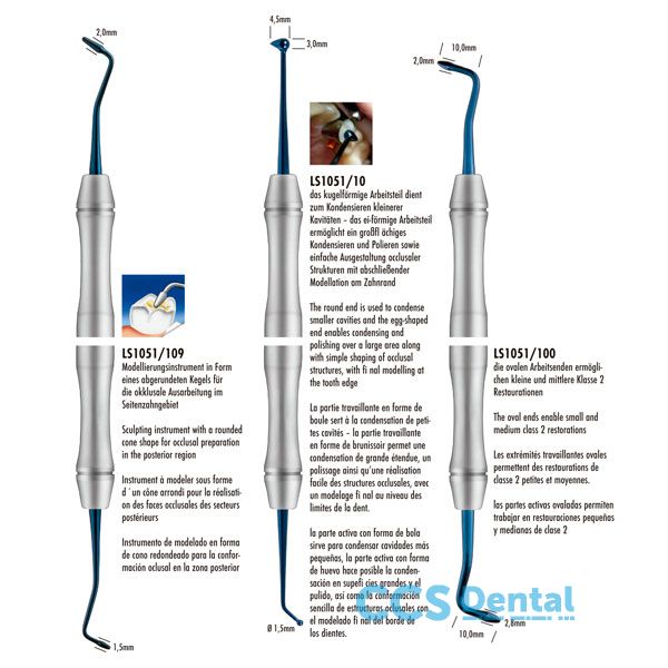 Instrumentos para obturación y modelado de todo tipo de materiales plásticos. auto y fotopolimerizables. como cementos. composites fondos de cavidad y análogos.LiquidSteel® es una gama de instrumentos de acero inoxidable de alta densidad.Las partes activas ovaladas permiten trabajar en restauraciones pequeñas y medianas de clase 2.